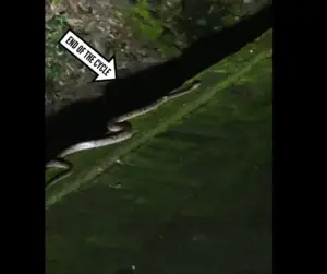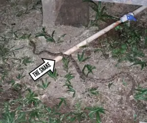 I was sitting on my motorcycle with the motor on, I had just turned the bike around and stopped to adjust the blanket strapped down behind me. As I put my right foot down for balance, I felt a sharp !STAB! on my heel and immediately thought “Wow, I had no idea a scorpion sting would hurt that badly!” I looked down and was not at all prepared to see a snake literally looking up at me. I screamed at the top of my lungs, lost my balance, and the bike fell on top of me, pinning me against the wall and stoping me from being able to move away from the snake. Thankfully, it moved away from me as I freed myself and began to hyperventilate.